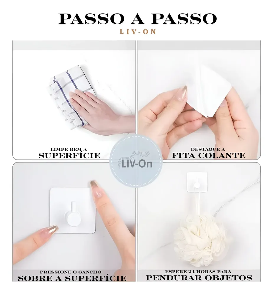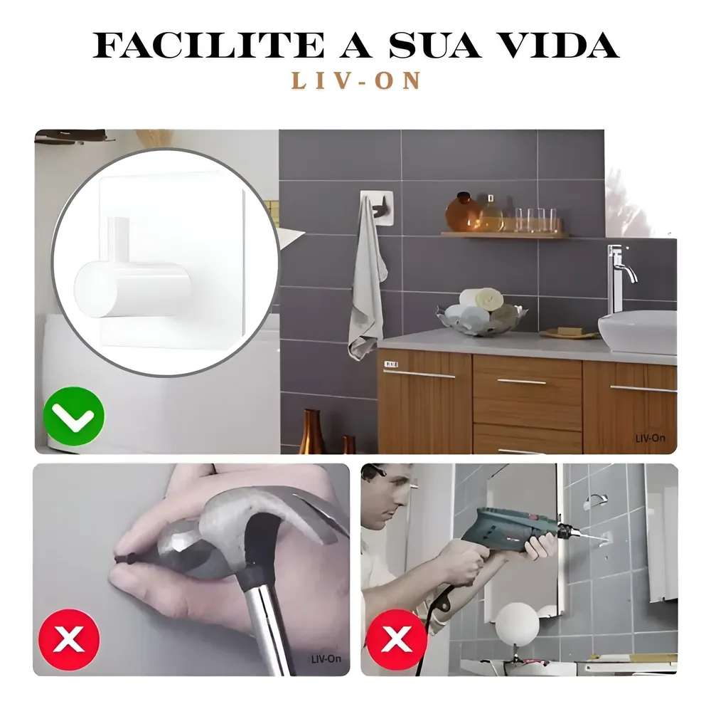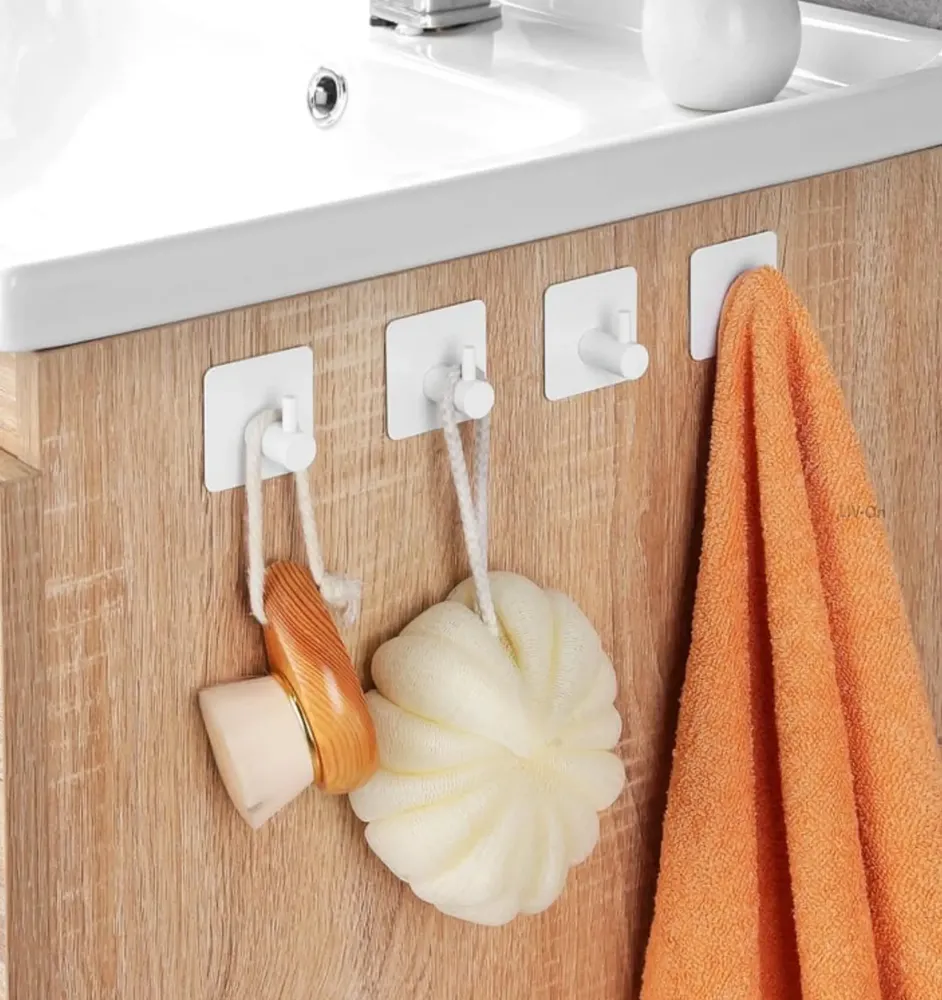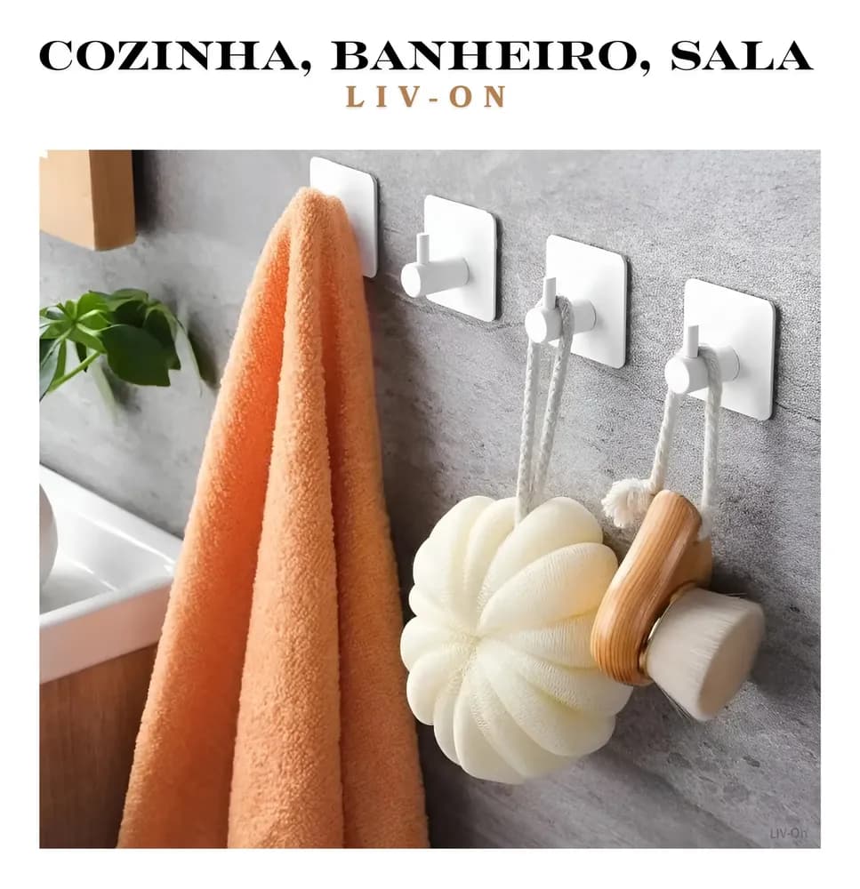 Pack com 3 ganchos de parede em aço inoxidável 45mm com fita adesiva inclusa. Sem furos, sem pregos. Design moderno e minimalista. Indicado para banheiro, lavabo, cozinha e ambientes externos. Fixação em superfícies lisas e não porosas. Resistente à umidade e ferrugem. Instalação fácil e rápida — limpe, cole e use.,